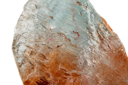 Amazing colorful Quartz Rainbow Flame Blue Aqua Aura crystal cluster closeup macro isolated on white background.
