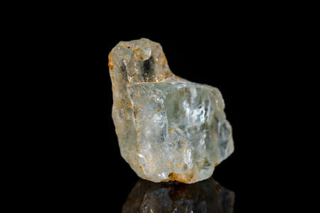 Natural rough heliodor (beryl group) gemstone on dark background (selective focus)