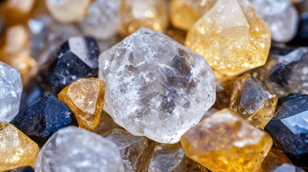 Quartz crystals showcase their unique texture and refractive properties in stunning clarity