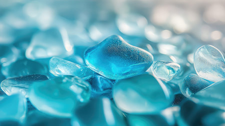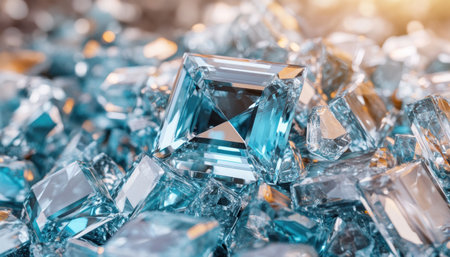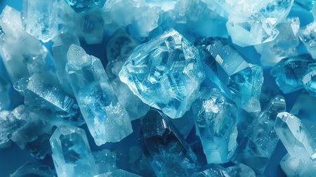A close-up view of a collection of shimmering blue crystals, each facet catching the light and reflecting a vibrant, almost electric blue hue. The crystals are arranged in a haphazard cluster, creating a sense of movement and energy, as if they were frozen in time, a moment captured in the heart of a glacier.