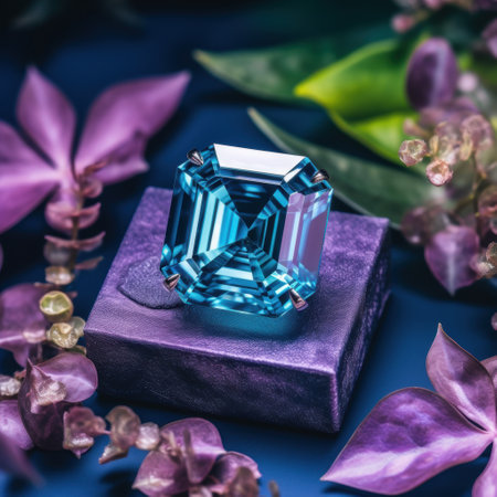 This stunning blue gemstone displays intricate faceting and brilliant color, creating an eye-catching effect against a soft background. Ideal for showcasing beauty and elegance.
