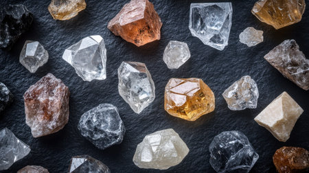 Close-up of uncut diamonds on background with multiple gemstones. High quality photo