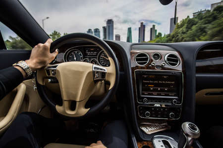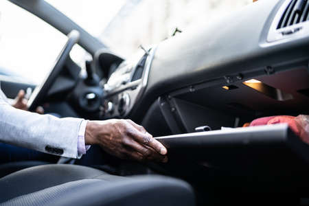 hands inside the car, preparing for the trip. car interior