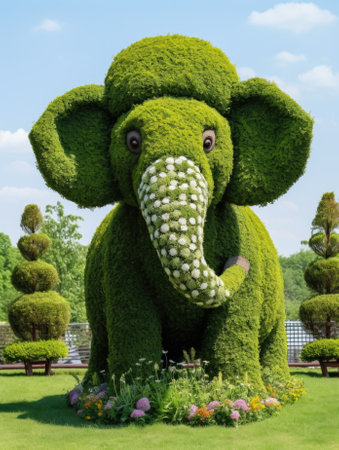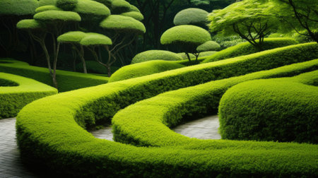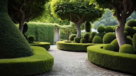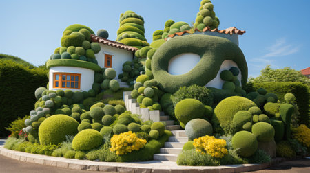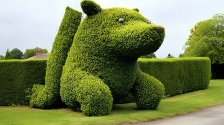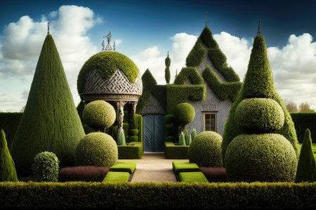 topiary garden, with intricate and unique designs showcasing the artistry of topiary, created with generative ai