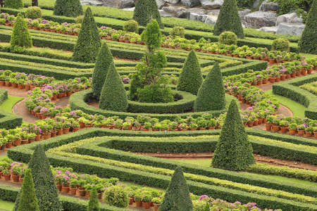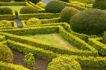 Hedges at Gaasbeek Castle located in the municipality of Lennik, Belgium. The beautifully manicured castle courtyard and gardens.