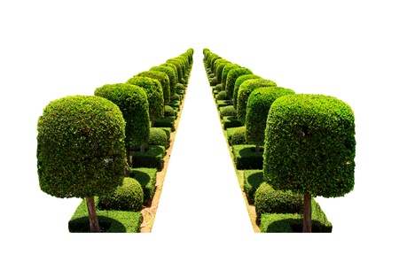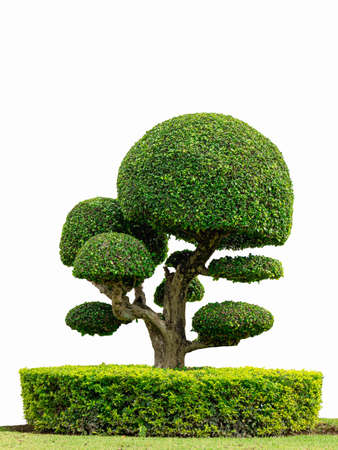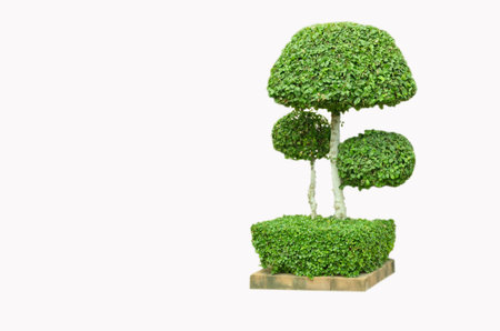 Tooth brush tree is cut into a round shape on the branches for beauty. It is the default white background with leaves, branches and stems isolated.