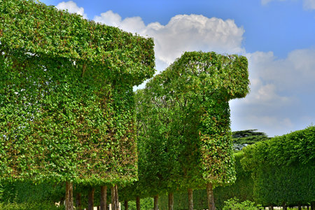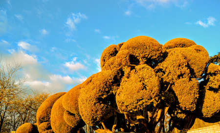 Beautifully Sculpted Topiary Hedges Against a Sunny Sky