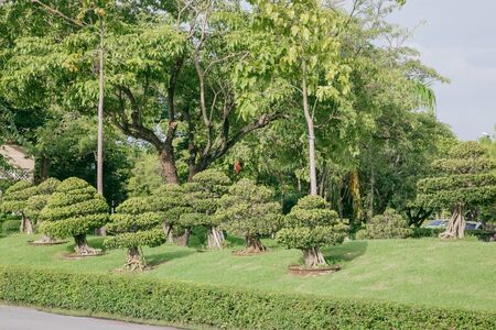 Garden of tako tree bending. Bonsai Ebony element tree for decorate architect design.