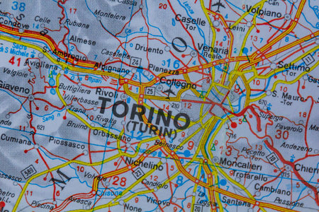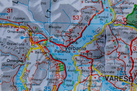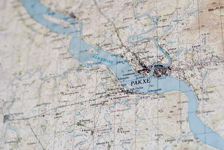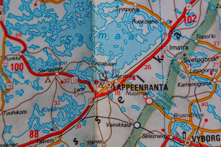 Fragment of the geographic map of town. Selective focus. Shallow depth of field.