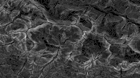 Detailed representation of topographic contours creates a dynamic visual experience with flowing lines and varying elevations.