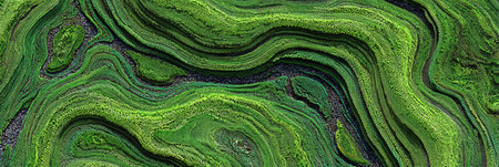 Vibrant green layers intertwine to create stunning patterns that reflect natures beauty in a lush landscape under bright daylight.