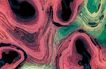 Abstract topographic map with blue and pink contour lines