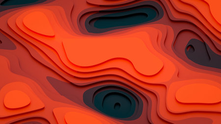 A complex, multi-layered visual inspired by geological formations, featuring detailed contour lines in warm earthy hues that evoke natural rugged landscapes.