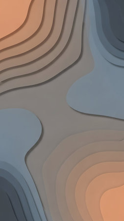 An abstract background with smooth, layered curves resembling topographic map contours in a palette of muted blue, orange, and gray tones.