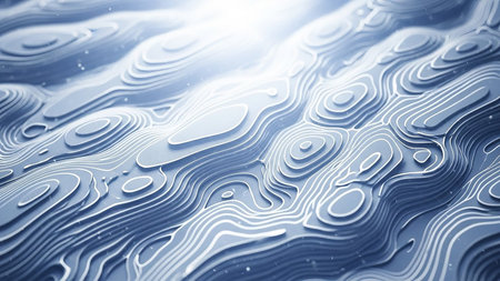 Depth showing abstract topographic map or contour lines in shades of blue and white with light effects and subtle particle details creating a sense of depth and...