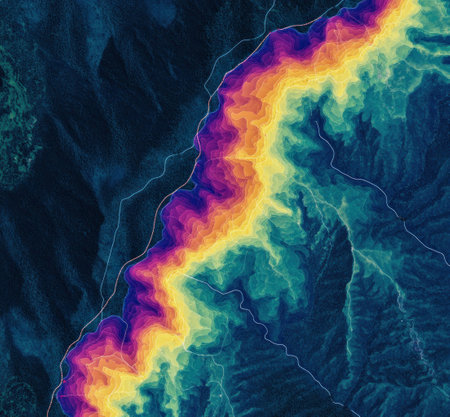 Stunning abstract topographic landscape featuring vibrant contours and varied colors, perfect for projects related to nature, geography, and design.