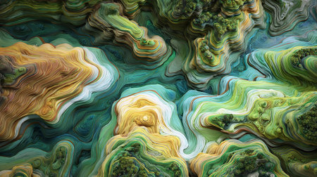 Explore a captivating abstract landscape showcasing vibrant layered contours and rich topography, perfect for creative projects and artistic inspiration.