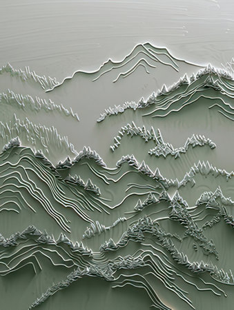Topographic Mountain Range Relief Map in Light Gray Tones
