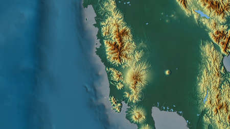 Bulacan, province of Philippines. Colored relief with lakes and rivers. Shape outlined against its country area. 3D rendering