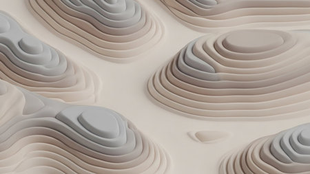 Tones showing topographic contour map abstract with layered organic shapes in neutral beige and grey tones creating a 3d landscape effect.