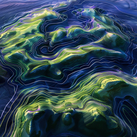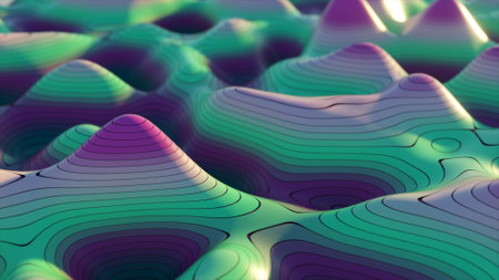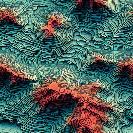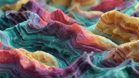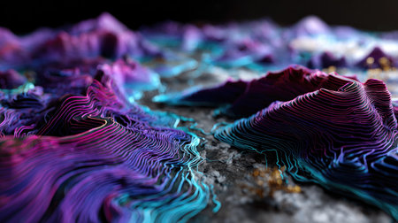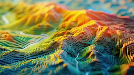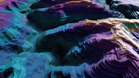 Explore a captivating abstract landscape showcasing vibrant layered contours and rich topography, perfect for creative projects and artistic inspiration.