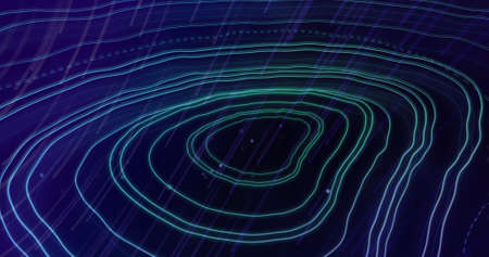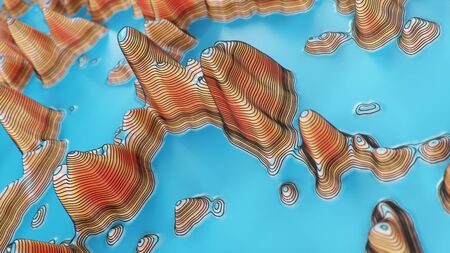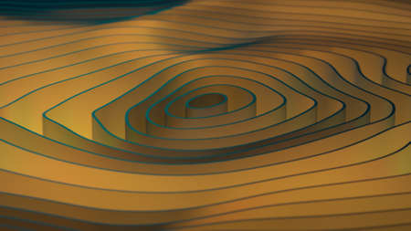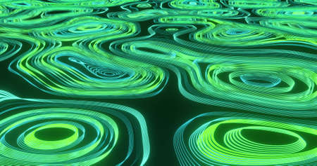 Abstract background of topographic map concept. Contour map stripes. Valleys and mountains. Geography concept. Wavy backdrop. Magic neon light curved swirl line. 3D illustration