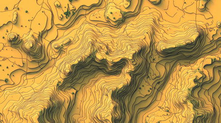 High-resolution abstract topographic map featuring intricate contour lines and textures in earthy yellow tones, ideal for creative projects and visual applications.