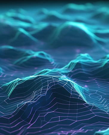 A captivating abstract digital landscape featuring intricately arranged points in a soothing color palette, creating a three-dimensional wave effect, perfect for modern design.