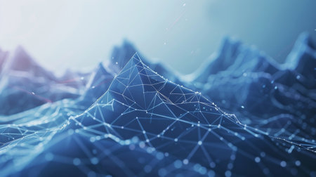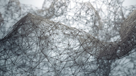 Explore a captivating abstract 3D mesh surface in a blend of white and black, representing a digital landscape. Ideal for creative projects and modern design themes.