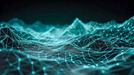Abstract 3d rendering of a digital landscape with a dynamic wave.