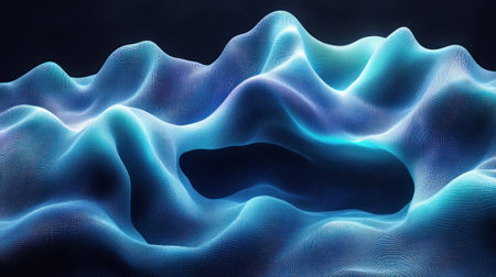 This abstract image features smooth, flowing blue waves set against a dark background, creating a dynamic and serene visual experience perfect for modern design projects.