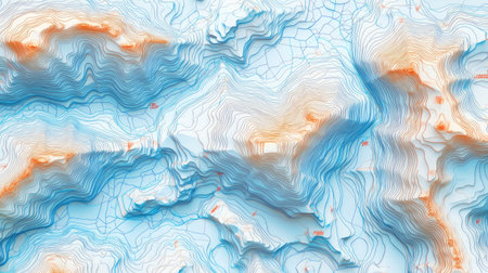 This abstract topographic map features flowing blue and orange lines that convey depth and elevation, perfect for backgrounds and artistic projects.