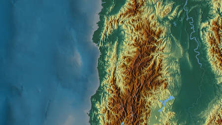 Relief map with mountains and rivers, Concept of topography and cartography