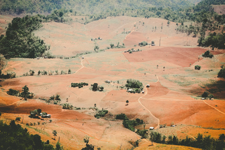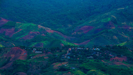 landscape of destroy the forest on Mountains that have been cut down tree for farming farmers in the rural villages in thailand