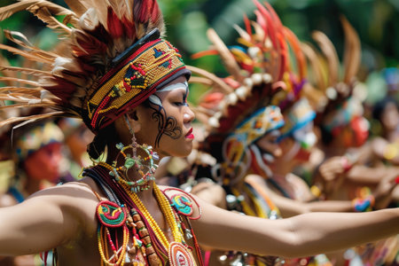 Colorful Indigenous Festival Celebrates Traditional Clothing and Cultures Outdoors generated by artificial intelligence
