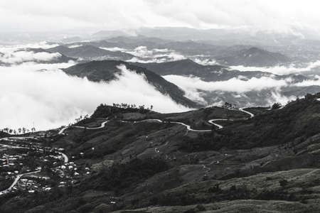 Mountain road at ( phu tubberk) in Phu Hin Rong Kla National Park, Phetchabun Province, Thailand. Black and white colour