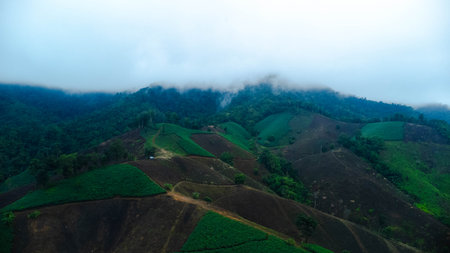 Beautiful mountain landscape of Doi Chang hill in Chiang Rai province, Thailand