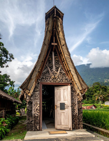 Traditional Tongkonan house represent the ancestral traditions and cultural wealth of the Toraja people in Sulawesi, Indonesia