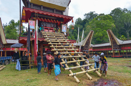 Tana Toraja, Sulawesi, Indonesia - August 15: Funeral ceremony on August 15, 2016 in Tana Toraja, Sulawesi, Indonesia. In Tana Toraja the funeral ritual is The most elaborate and expensive even