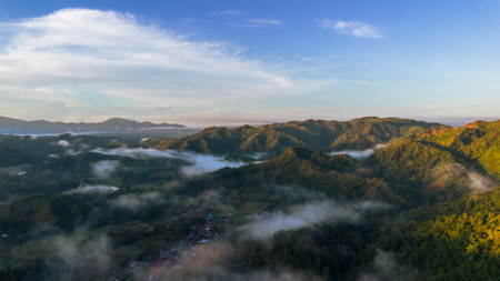 Aerial View of Misty Mountain Landscape