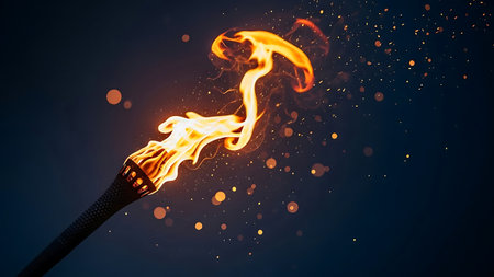 Olympic torch burning, illustration for Olympic games in summer 2024 imagined by AI generative - not the actual event.
