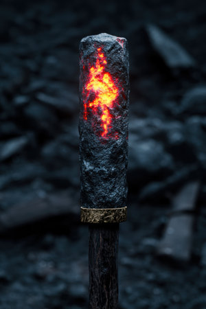 A torch is ablaze in a dimly lit environment, its flames dancing against a dark background. The composition highlights the fiery glow against the obscured forms. This visual may serve various editorial and commercial purposes, emphasizing illumination and potential. The scene conveys a sense of mystery.