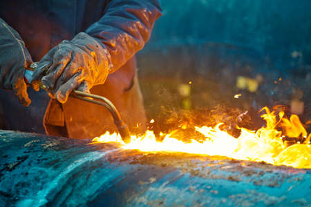 photo of worker doing gas cutting on steel