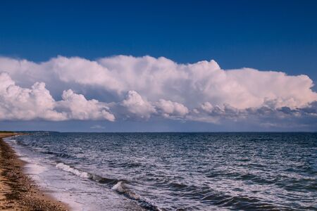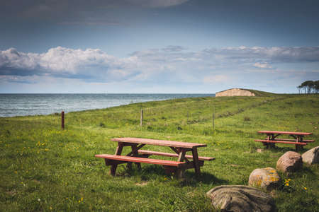 Ocean view in Denmark on the coast, clouds and green grass make a perfect calm picture