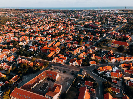 Picturesque Dragor town and blue sea in Denmark in a sunny day