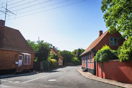 Streets of Denmark with colorful buildings on the island of Bornholm in the summer