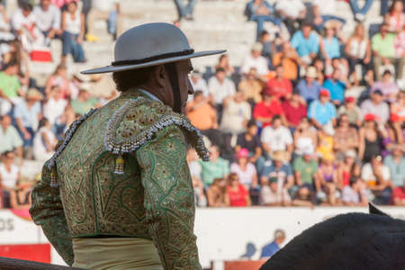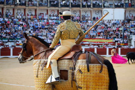 Jaen, Spain - September 12, 2008: Picador bullfighter, lancer whose job it is to weaken bull's neck muscles, in the bullring for Jaen, Spain