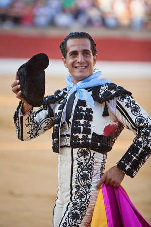 Baeza, Jaen province, SPAIN - 15 august 2010 Bullfighter Ivan Fandiño to the turning of honour with montera hat in his hand in the Bullring of Baeza, Jaen province, Andalusia, Spain