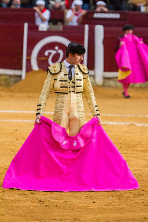 Spanish Bullfighter with the Cape in the bullring, Spain
