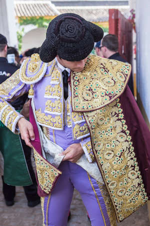 Andujar, SPAIN - September 7, 2014: Spainish bullfighter Miguel Abellan totally focused moments before leaving to fight in Bullring of Andujar, Spain